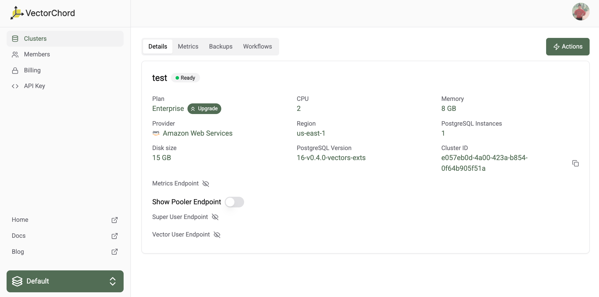 $ psql 'postgres://test_user:vaBgs6CcrtMu@test-f5ys31pvbca4x6f9.us-east-1-dev.aws.vectorchord.com:5432/test?sslmode=require'