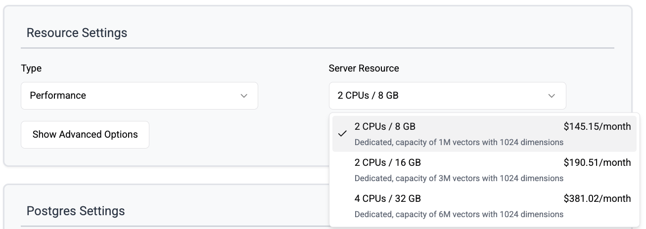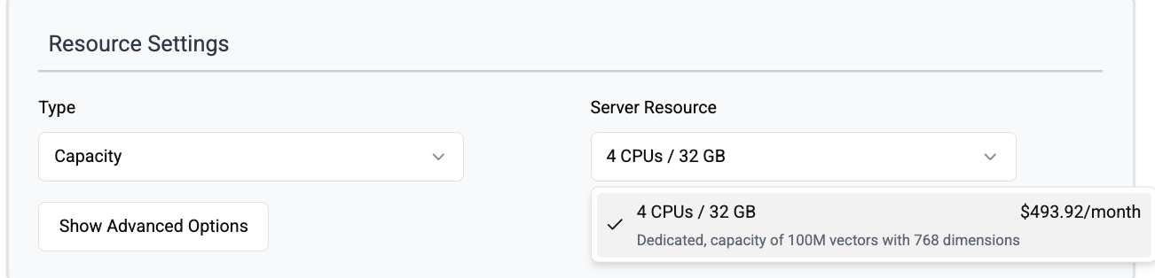 • Capacity of 100k vectors with 1024 dimensions, this is an estimate, and you can also insert 25k vectors with 4096 dimensions.