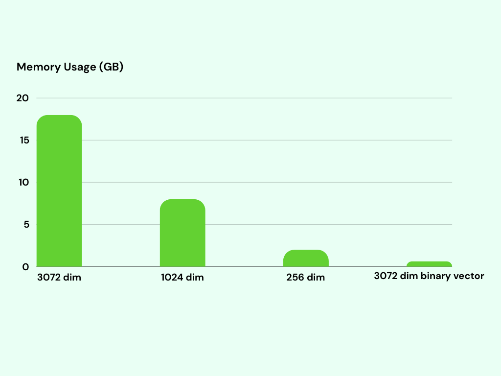 • Faster indexing and search: Smaller embeddings can be indexed and searched faster than larger embeddings.